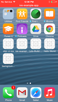 When correctly configured, iOS provides an indicator that your app is running in the background with an active audio session. This is seen as a red background of the status bar, as well as an additional bar indicating the name of the app holding the active audio session — in this case, your app.